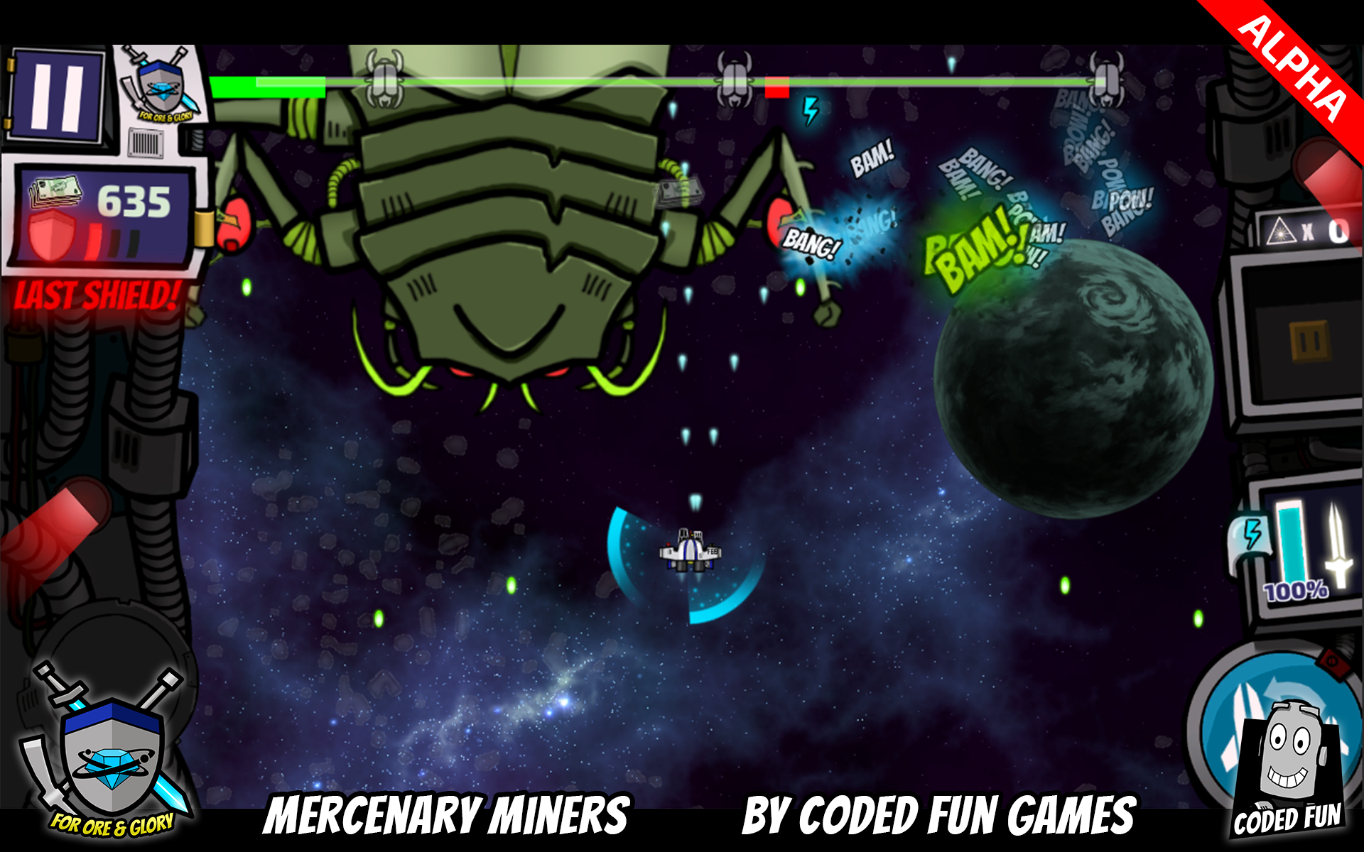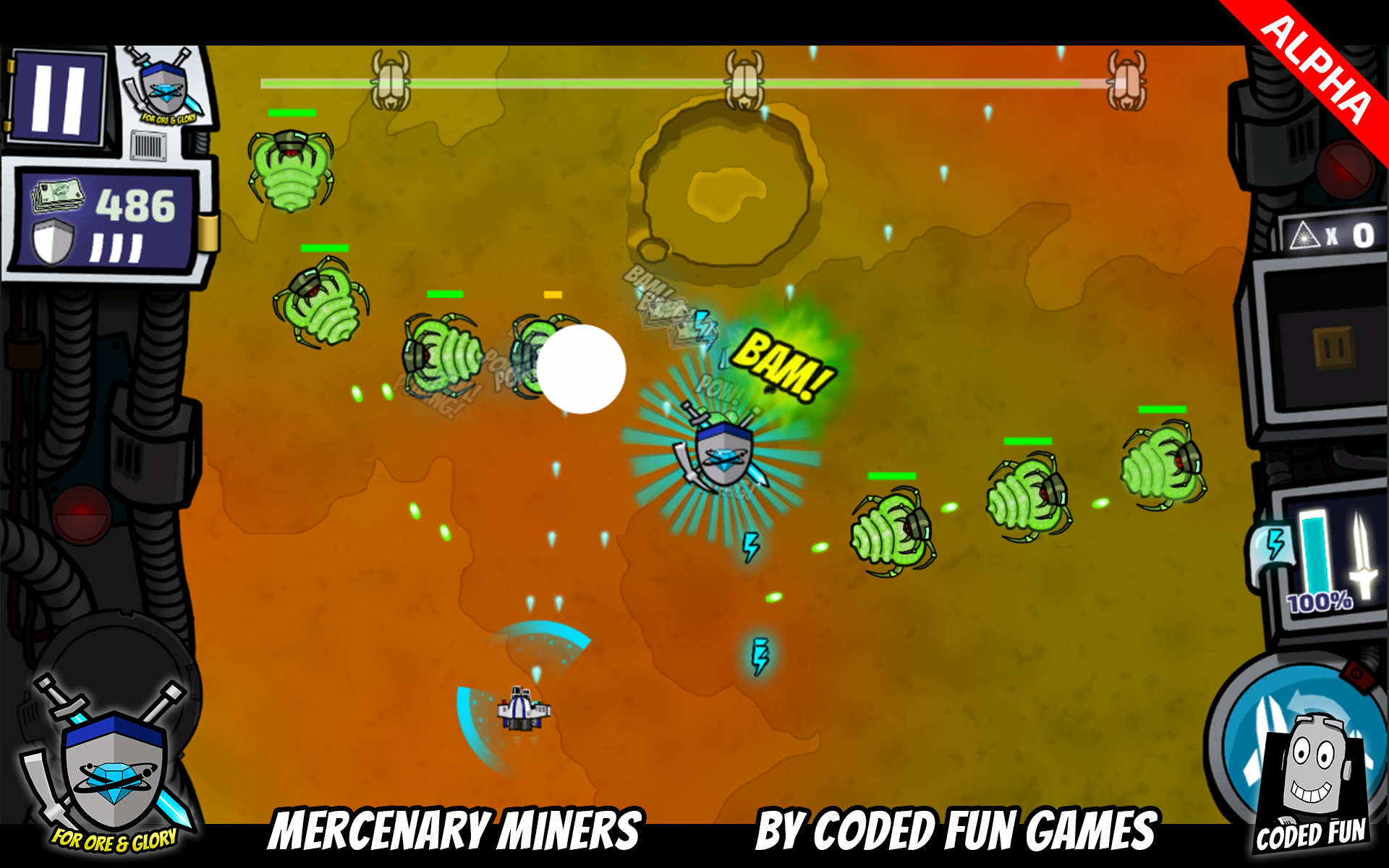 Next gamesHaving proof 'it can be done', the development of Mercenary Miners started right after the release of Rocket Descent in 2016. Only having time to develop games about 3 evenings a month, development is slow but steady. From 2019 onwards Mercenary Miners is in open beta. In 2020, development of a small side project 'Crazy Pirate Kaboom' started, which was released on Google Play in April 2021.
